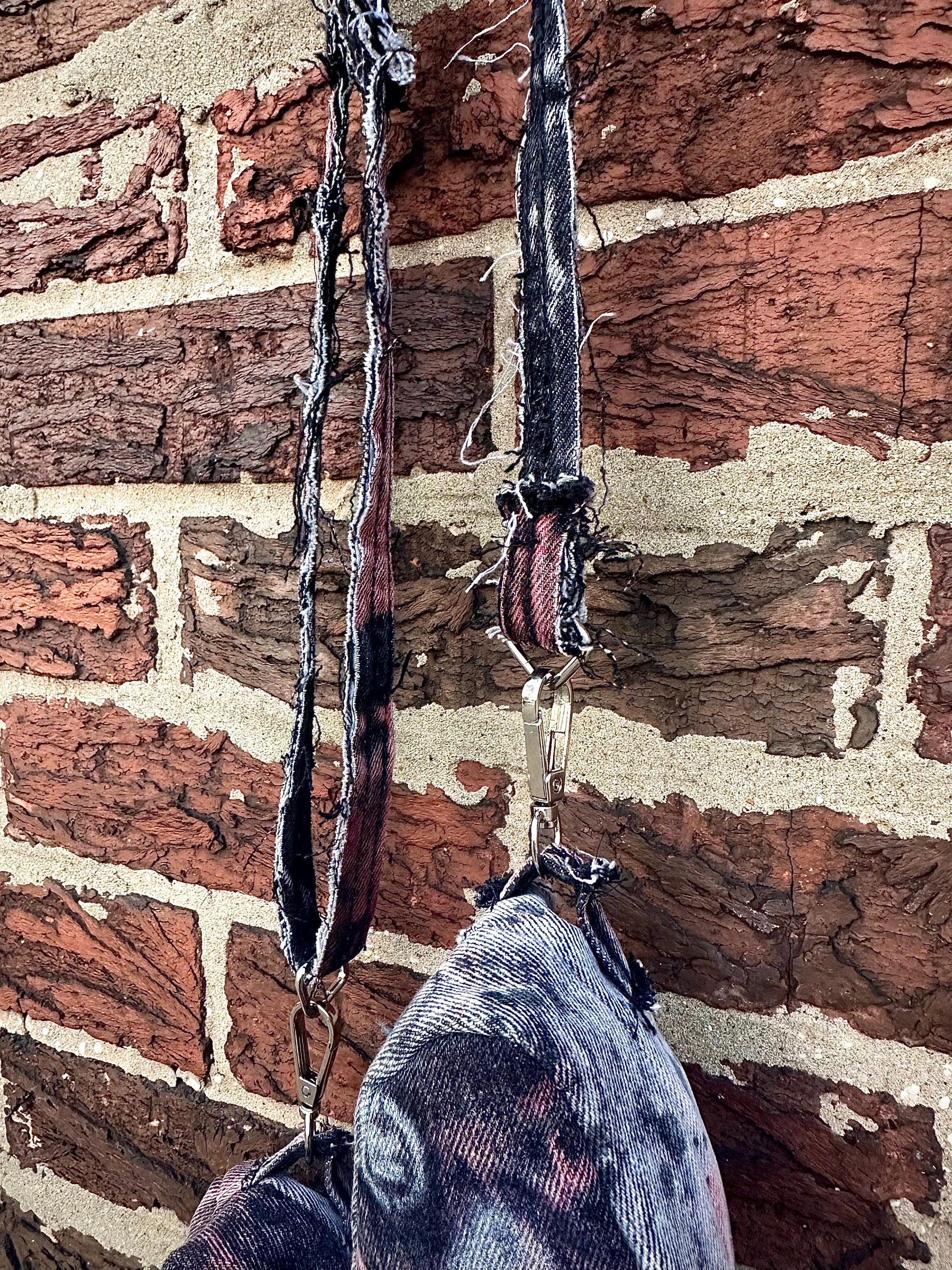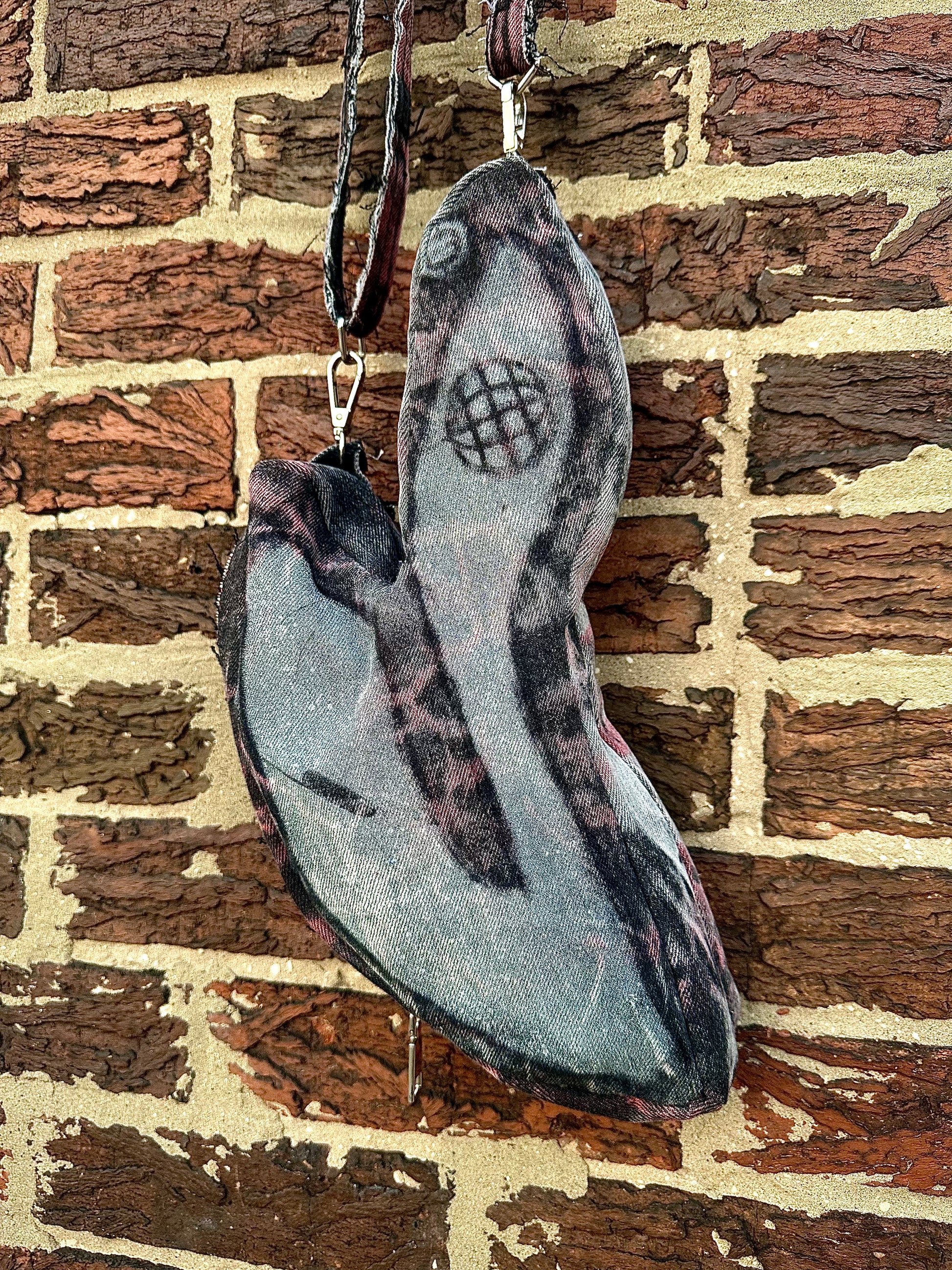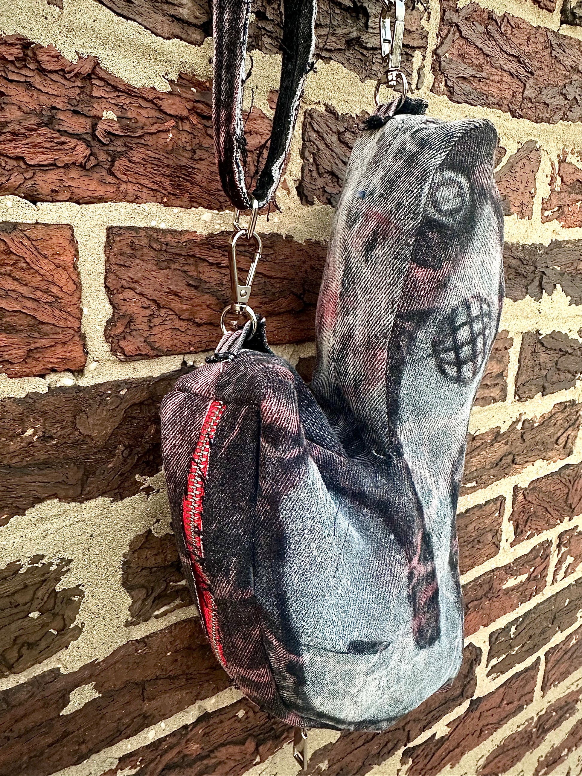 This handmade ENEVER shoulder bag is constructed from a single pair of repurposed denim jeans and built entirely in the shape of the ENEVER logo. More than a bag, it’s a wearable emblem — turning the brand mark itself into a functional object.
